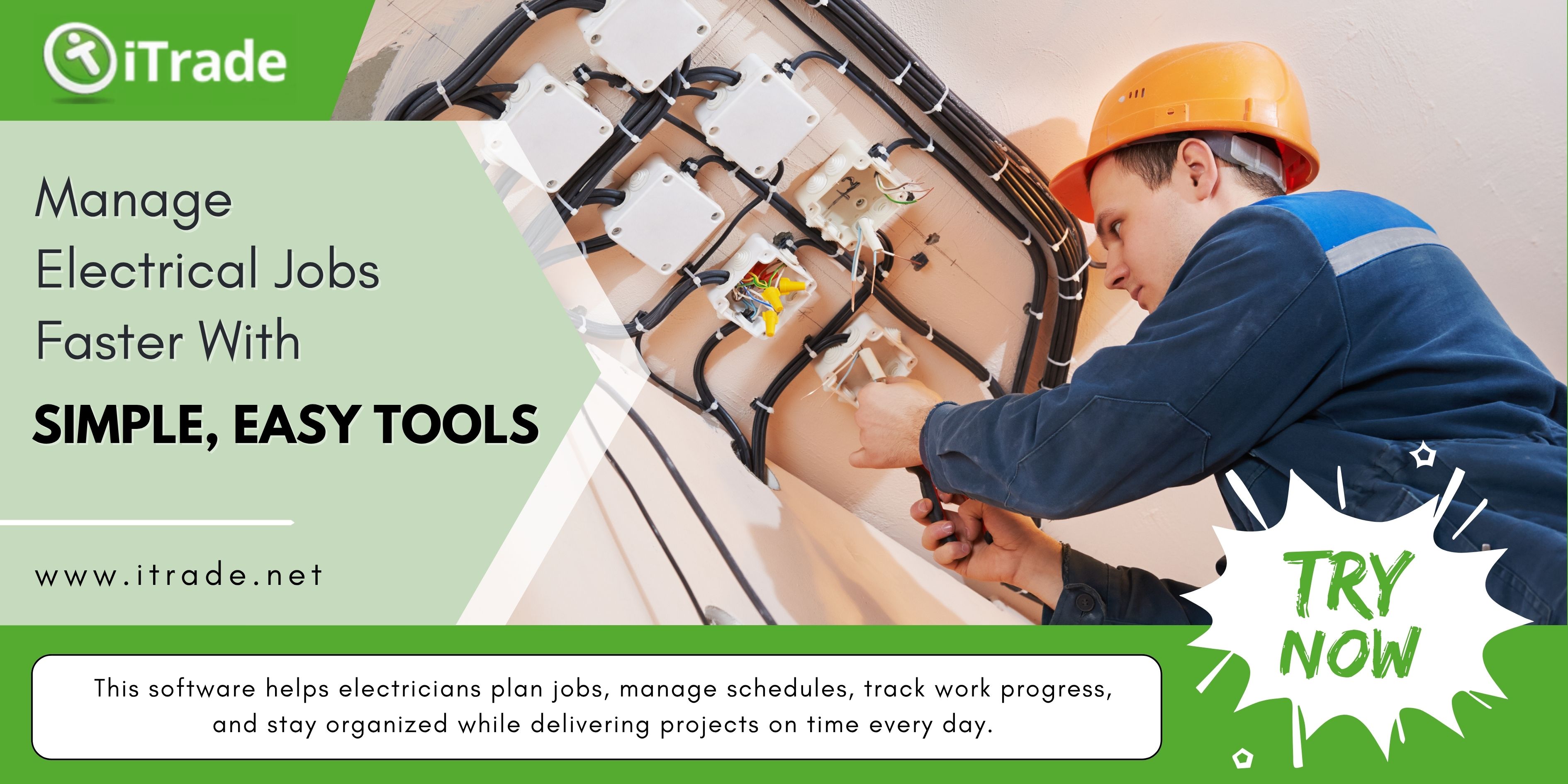 iTrade brings simple electrician job management software that helps electricians manage work more efficiently. It supports scheduling, job tracking, and team coordination in a clear and easy way. Businesses can stay organized, reduce delays, and keep every project moving forward without confusion. The system helps teams stay connected and focused on completing tasks on time. It’s a useful tool for electricians looking to improve workflow, save time, and manage daily operations with confidence. Contact us!