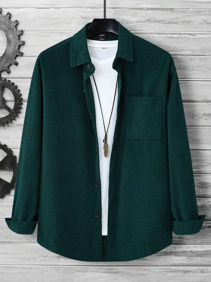 Manfinity Homme Men Solid Button Front Pocket Patched Shirt Without Tee