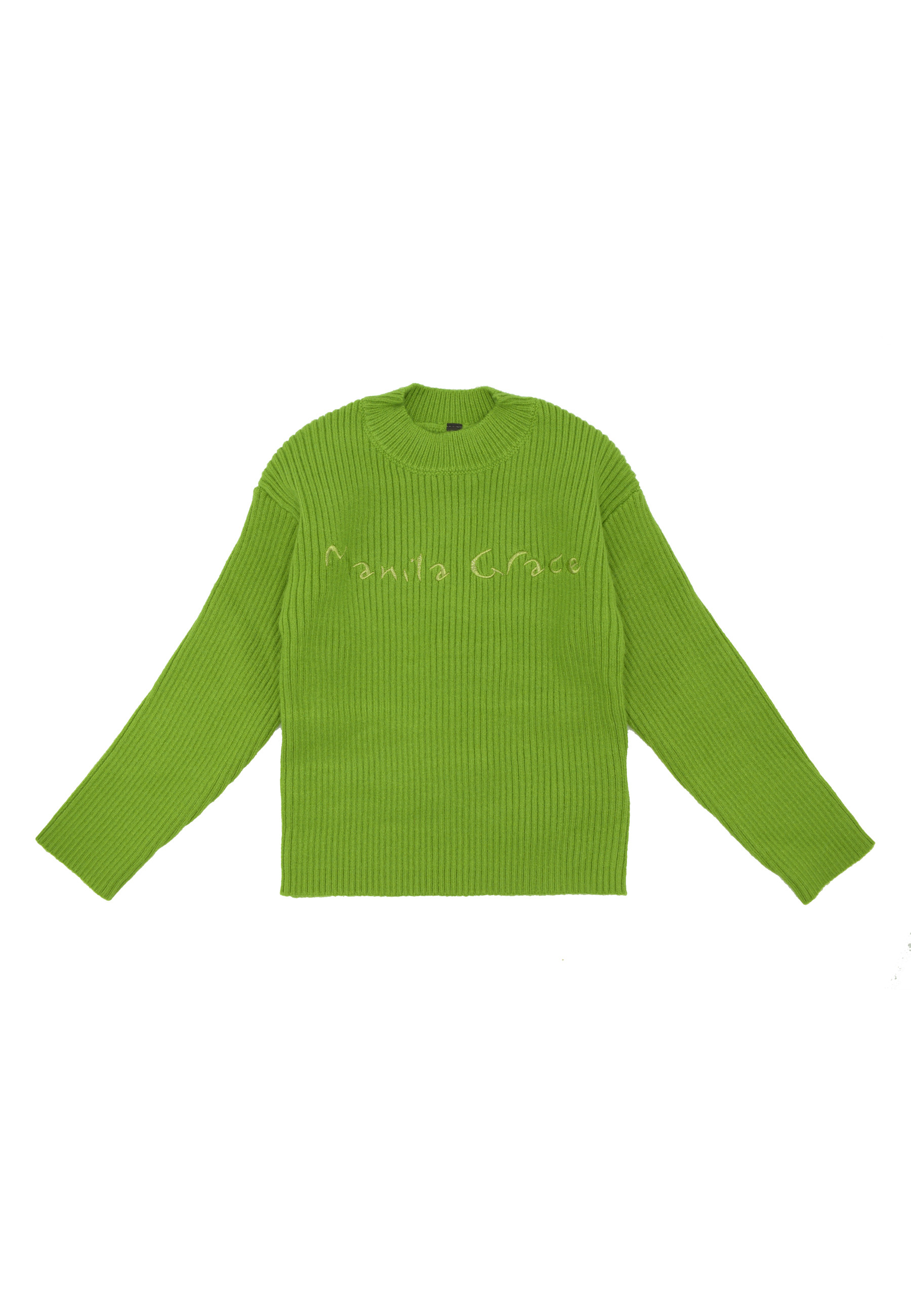 manila grace kids maglia verde lana costine bambina a