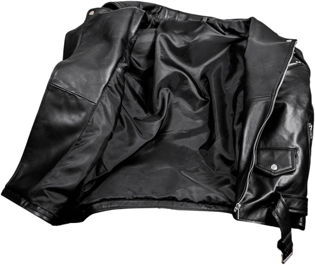 Man's Motorcycle Atom Cats Biker Black Real Genuine Sheep Napa Leather Jacket 5