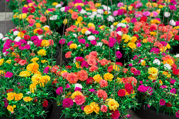 Many small, colorful flowers bloom beautifully