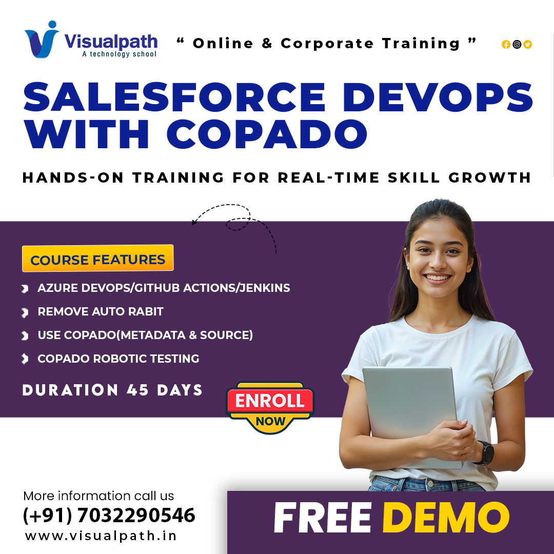 Visualpath offers Salesforce DevOps Course to help you master modern DevOps practices for Salesforce environments. Salesforce DevOps Online Training covers version control, CI/CD pipelines, and automation tools in detail. Salesforce DevOps Training In India helps you gain real-time experience through live projects. Available for India, USA, UK, Canada, Dubai, Australia, and globally. Call +91-7032290546