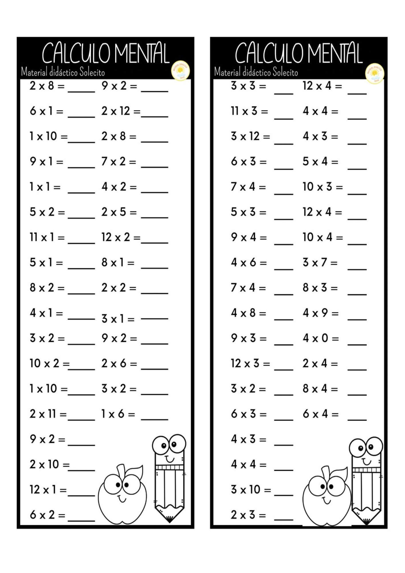 Material calculo mental resolver sumas restas multiplicaciones divisiones 10