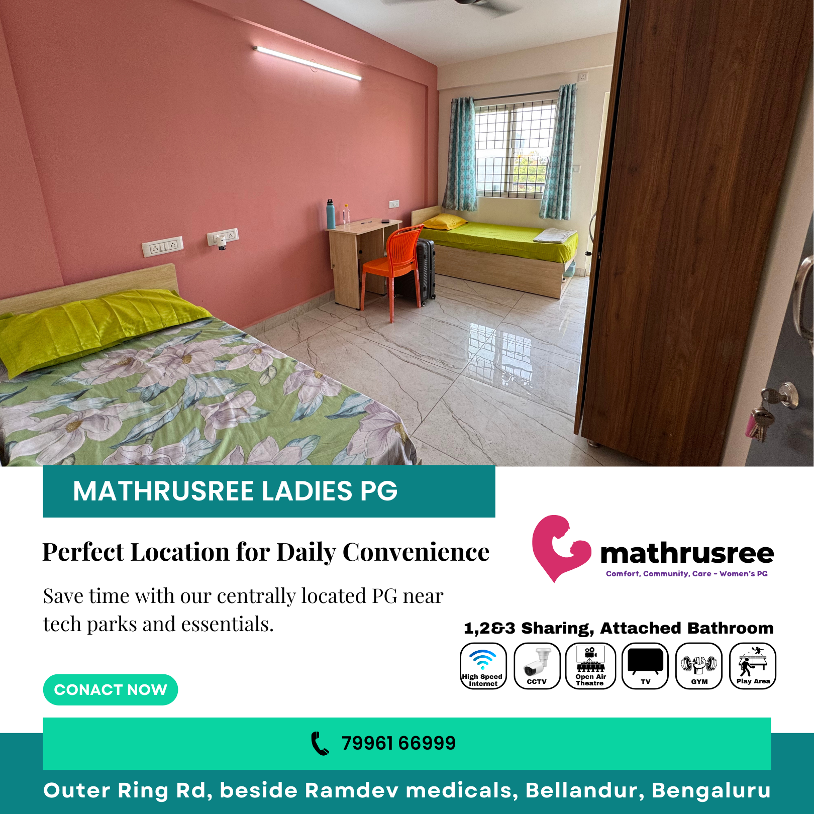 Mathru Shree PG is strategically located near major workplaces and essentials