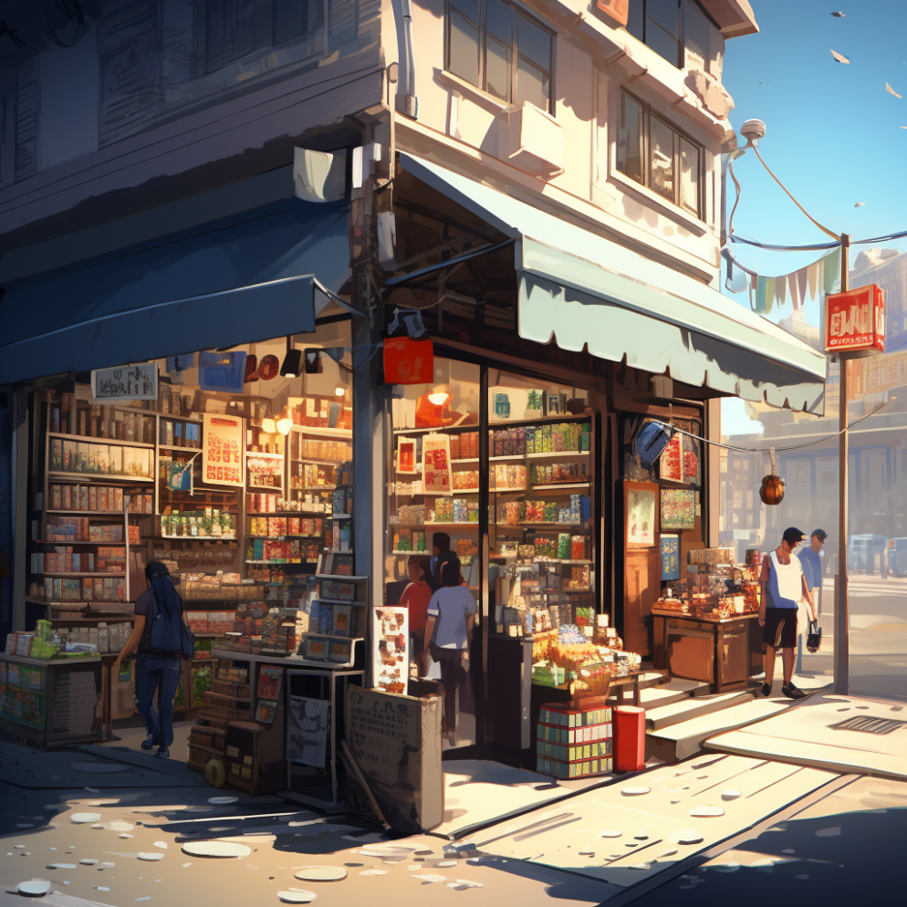 MearaIE front of a corner tiny small market with some customer 91caf70a eecf 4fce bc09 bbf0692b1ecc
