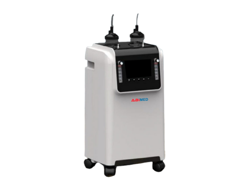 Abimed Medical Oxygen Concentrator delivers up to five liters per minute with ninety-three percent purity. It features an oil-free compressor, operates quietly, and includes comprehensive alarms for safe and efficient oxygen delivery. Its compact design ensures reliability, easy operation, and consistent performance.