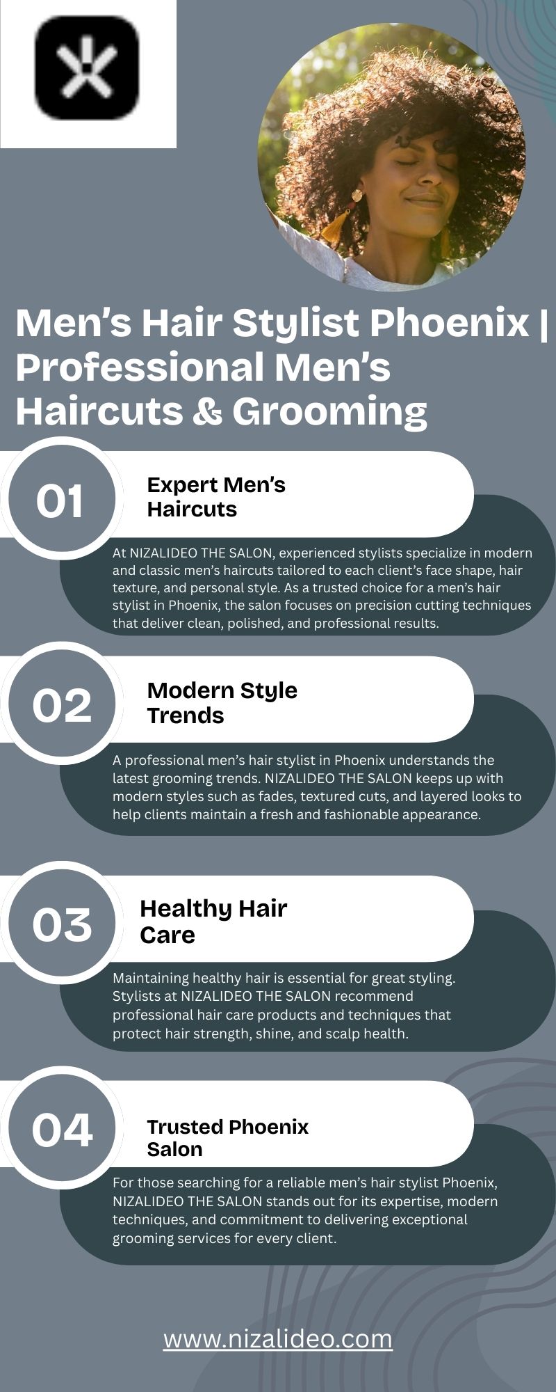 At NIZALIDEO THE SALON, our expert men’s hair stylist phoenix provides tailored haircuts, fade styles, and grooming services for today’s modern man. We combine creativity, technique, and premium products to deliver sharp, stylish results. Experience professional men’s hair styling in Phoenix and step out with confidence and a fresh new look. For more info contact us,