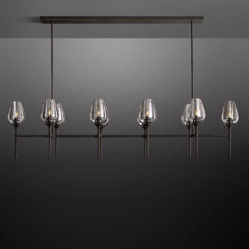 Michah+10+ +Light+Height+Adjustable+Rectangle+Luxury+Vintage+Kitchen+Island+Chandelier+with+Glass+Sh