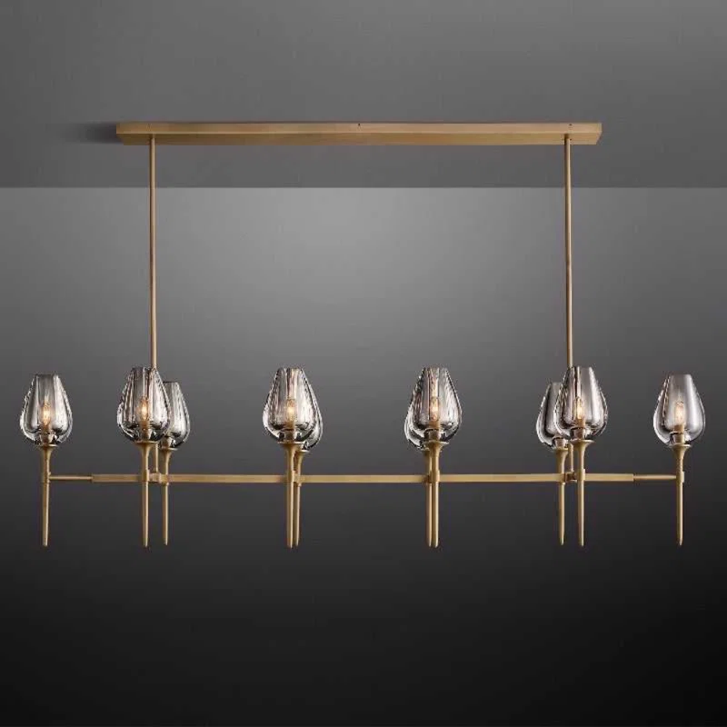 Michah+10+ +Light+Height+Adjustable+Rectangle+Luxury+Vintage+Kitchen+Island+Chandelier+with+Glass+Sh