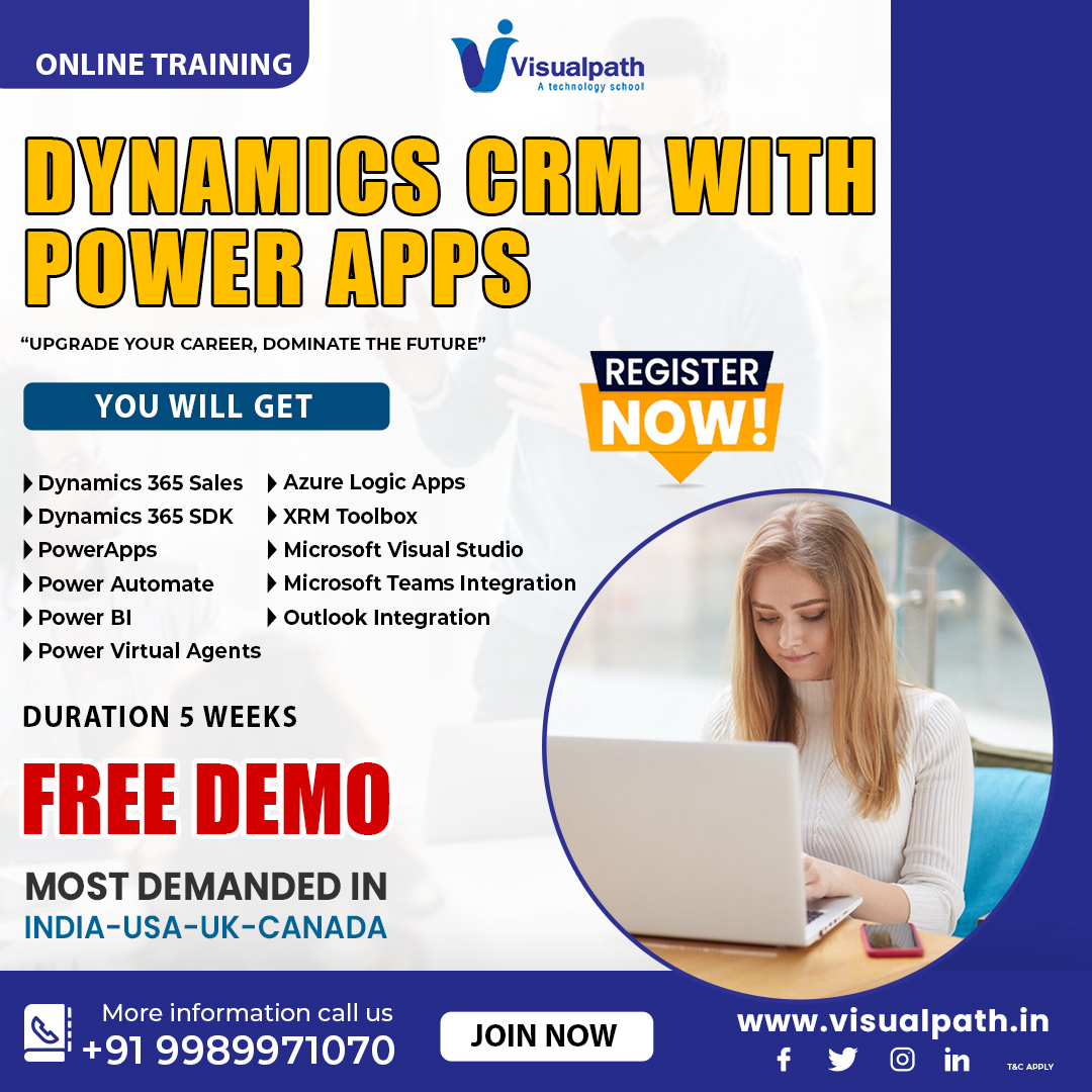 Join Visualpath is a best institute in Hyderabad offering Microsoft Dynamics 365 crm with real-time expert instructors and hands-on projects. Our Microsoft Dynamics CRM Certification, from industry experts and gain experience We provide to individuals globally in the USA, UK, etc. To schedule a demo, call +91-9989971070.