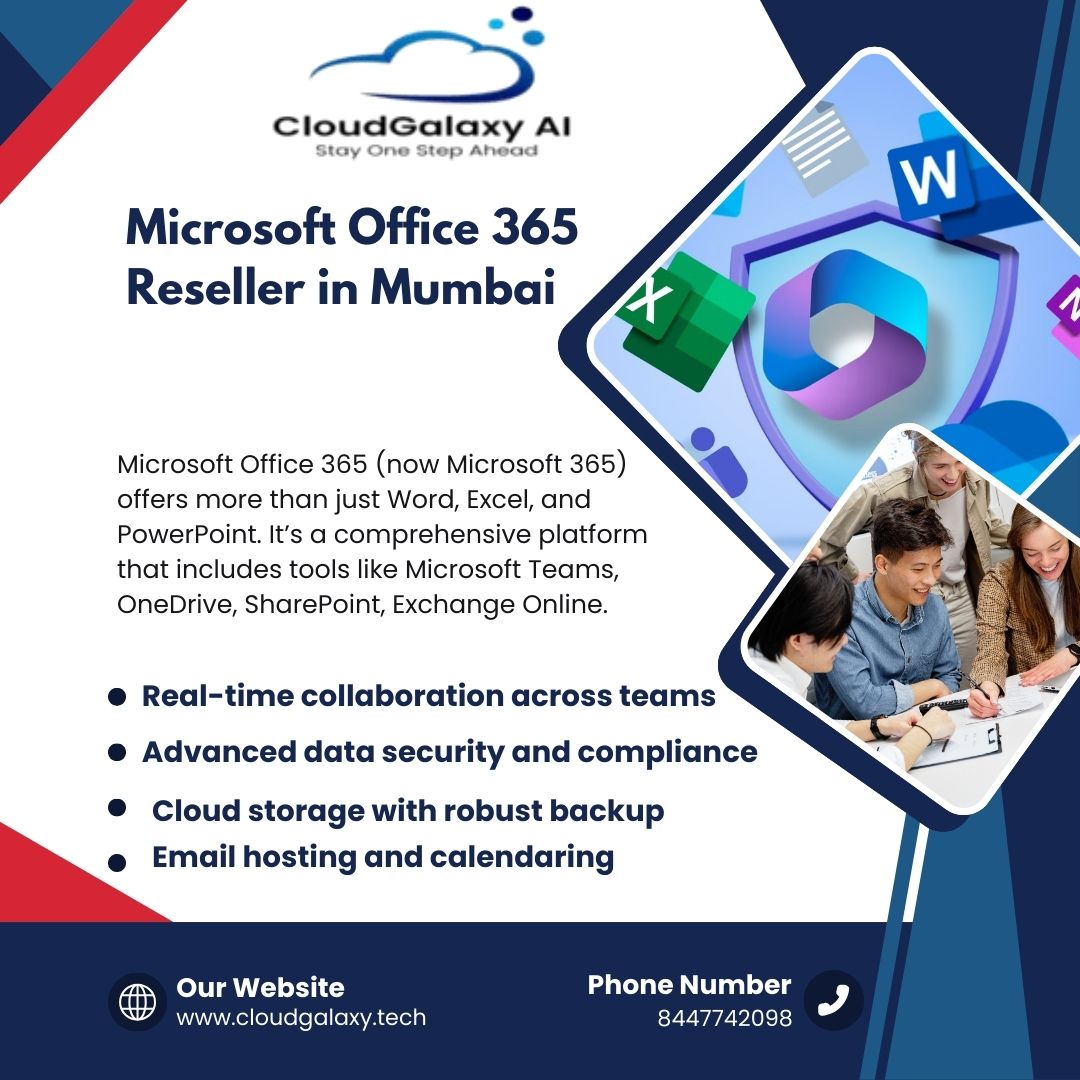 Cloud Galaxy is a trusted Microsoft office 365 reseller in Mumbai, providing businesses with genuine licensing, seamless deployment, and expert support. We help companies choose the right Microsoft 365 plans tailored to their unique needs, ensuring enhanced productivity and security. Whether you're a startup or an enterprise, our local expertise ensures quick implementation and hassle-free migration. Experience cost-effective Office 365 solutions with personalized service. Explore plans with Cloud Galaxy today!