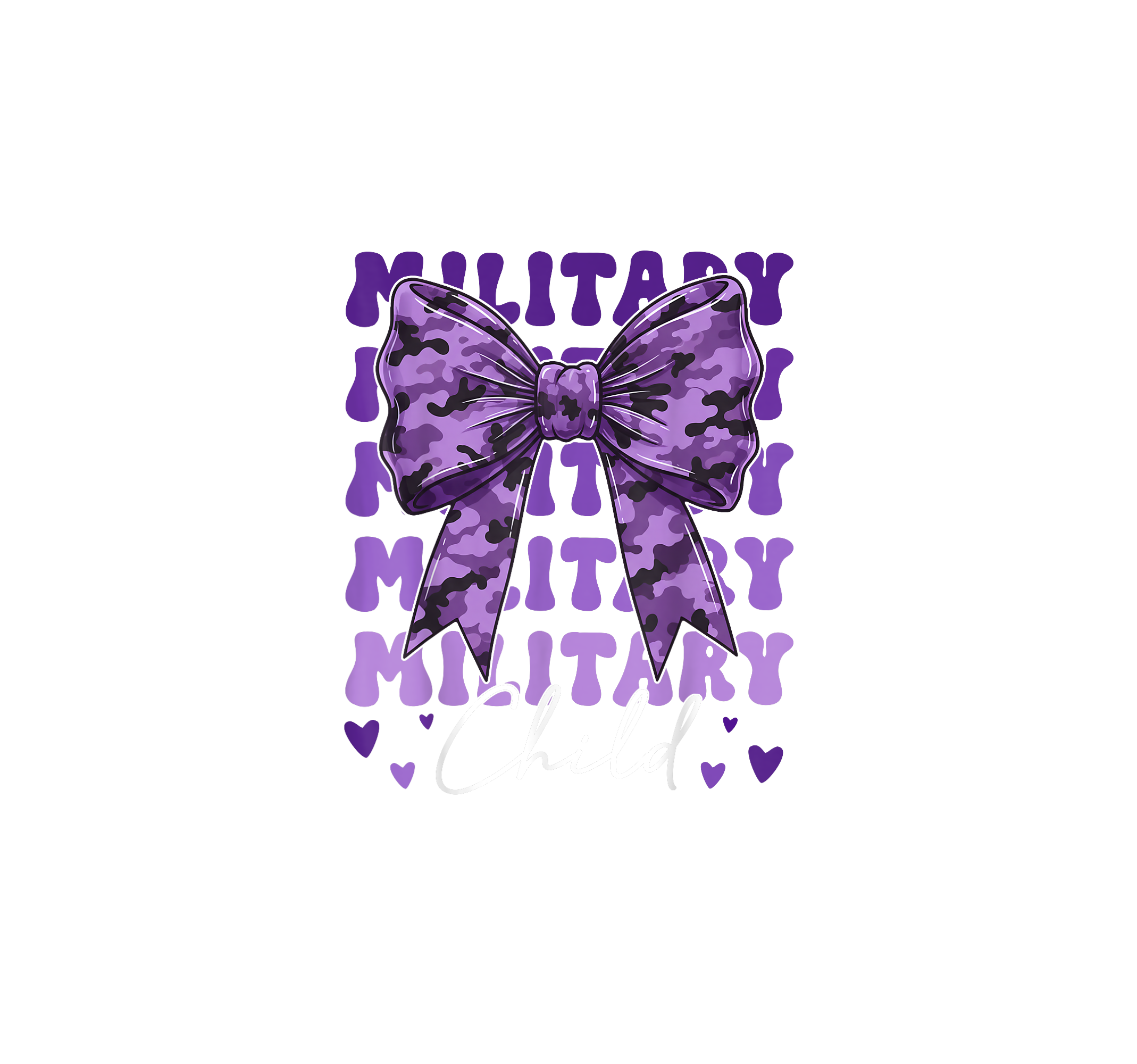 Military Child Coquette Bow Purple Up Camo Kids Boys Girls T Shirt