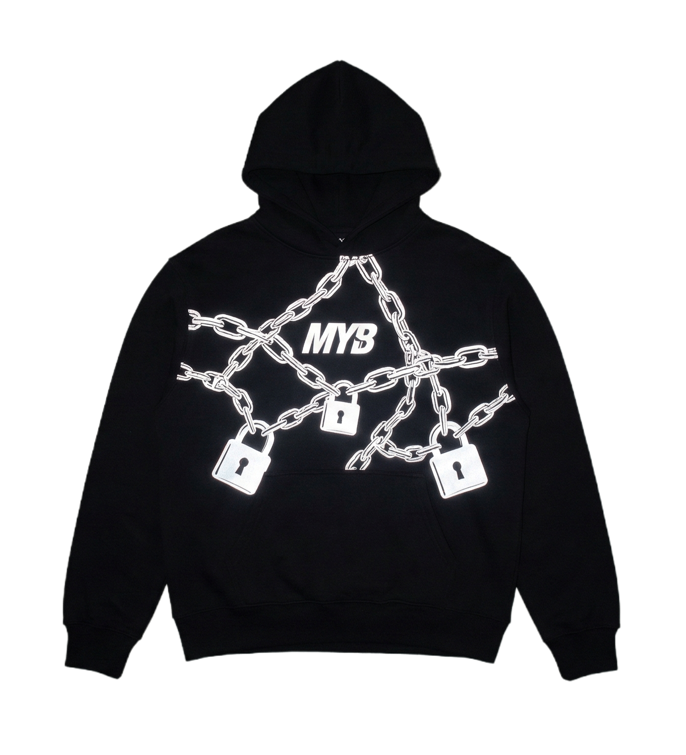 mind your business reflective hoodie with logo chains and padlocks on design (1)