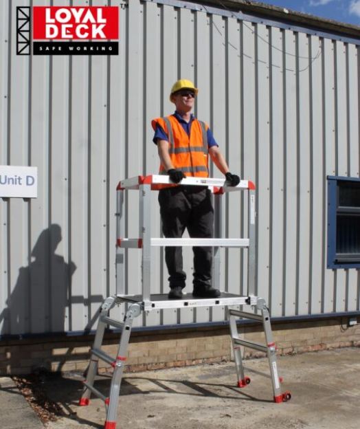 Loyal Deck with a foldable and extendable frame and platform. It is designed, tested and manufactured in accordance with EN131-4 Professional Standard.