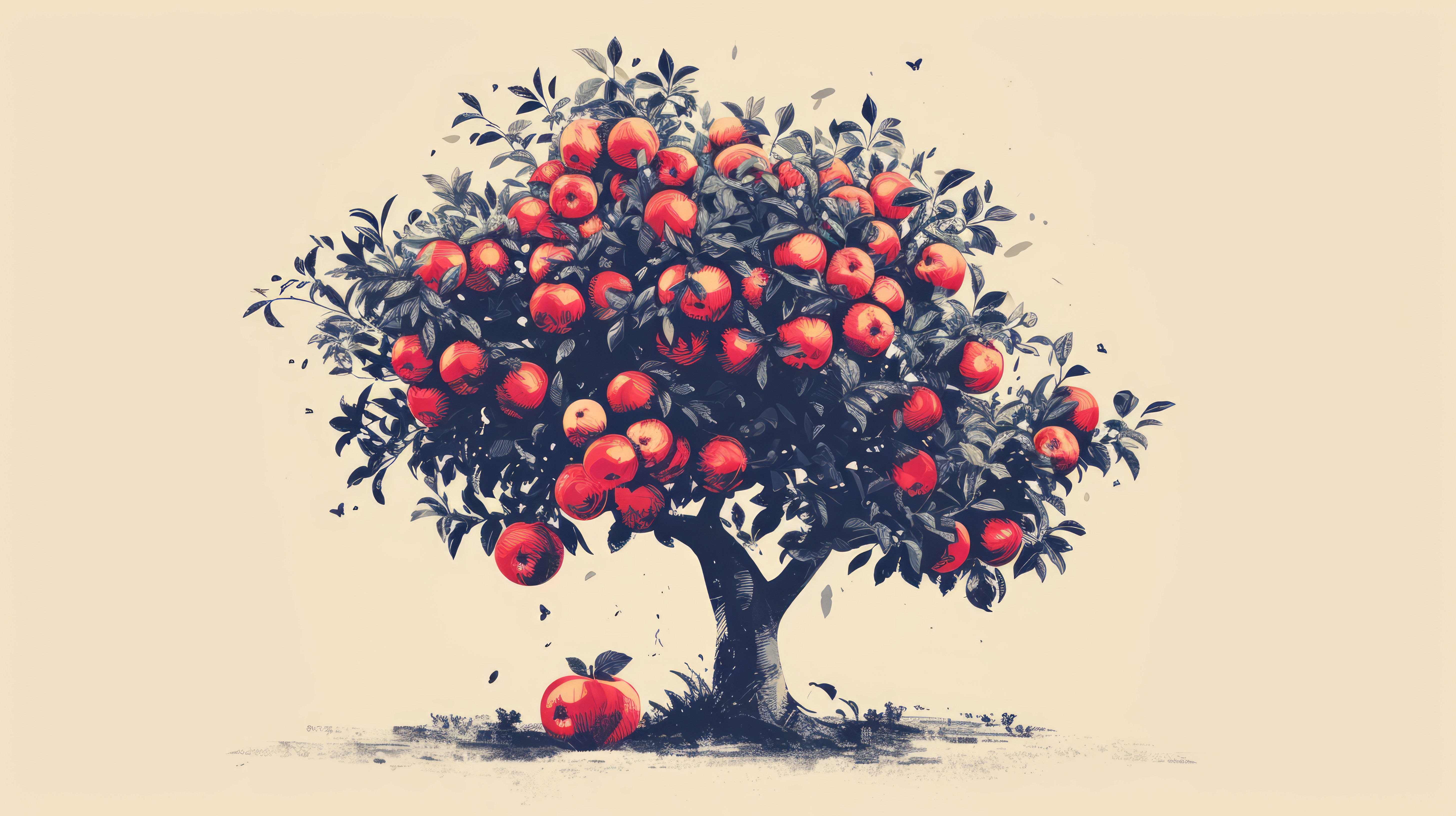 minimalistic less is more style of Illustration of a beautiful apple tree filled with apples a symbo