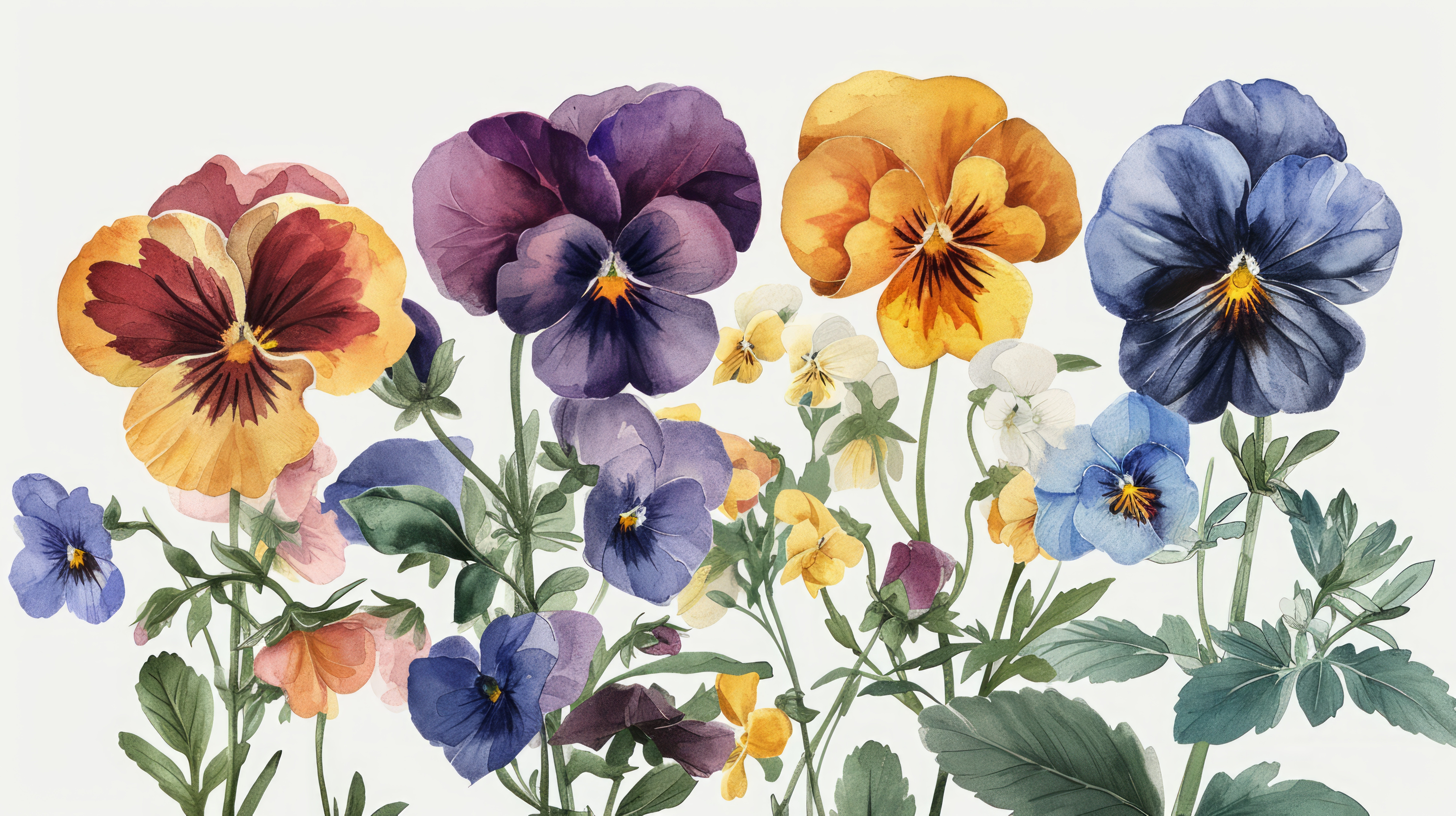 minimalistic less is more style of Watercolor pansy flowers bouquet collection Vector viola spring f
