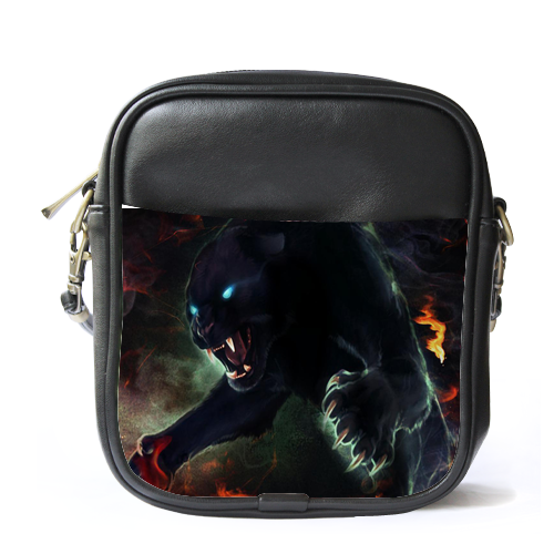 MiniSling0070 Mini Sling Bag Shoulder Bag Black Panthers With Fire Wild Animal Editions