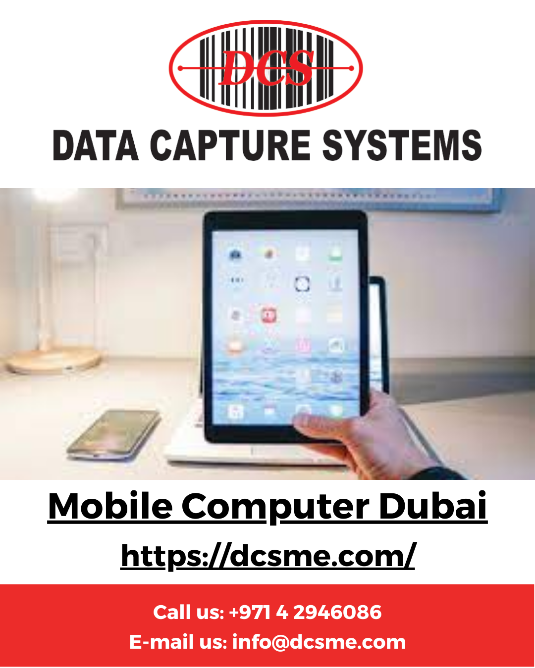 Mobile Computer Dubai. Searching for mobile computer services in dubai? Then you're at the right place. We at Data Capture Systems (DCS) is now a leading provider of business enabling solutions in the field of Automatic Identification and Data Capture (AIDC) using Barcoding, RFID, Wireless, GPS, Voice, Sensor and Biometric based technologies. Contact us today for more information @ www.dcsme.com
