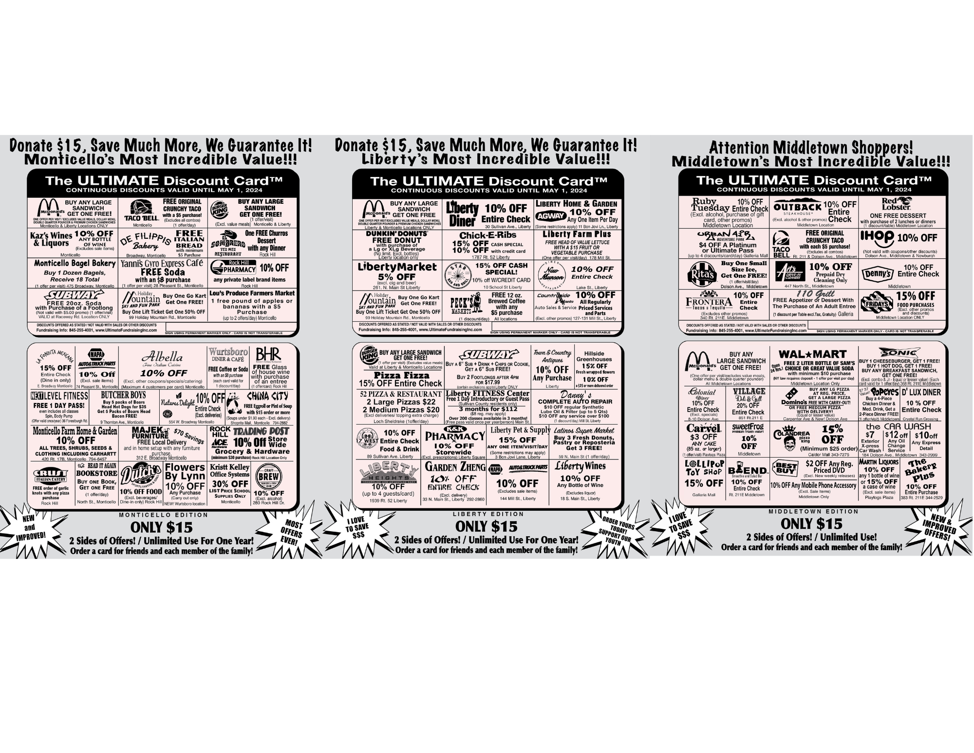 Monticello, Liberty, Middletown