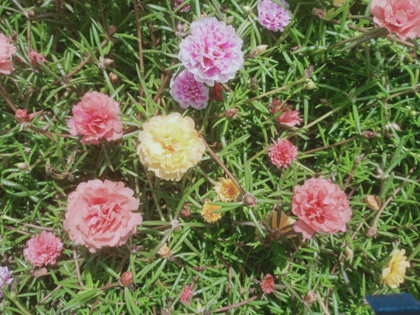 moss rose, rose moss, sun plant, japanese rose in the garden in Malaysia. blossom at ten o clock in