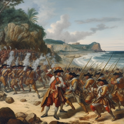 Mr. Vanden Plas An oil painting of a skirmish between Spanish a caf950e9 0cb8 455c b0a1 dbdf26e2c3d2