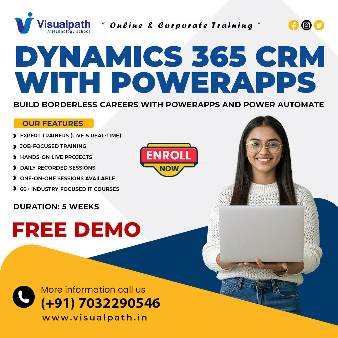 Visualpath offers a comprehensive Dynamics 365 Online Training Course designed to support career growth. Our Dynamics 365 CRM Course covers end-to-end modules with Expert Trainers (live and real-time). We are the leaders in MS Dynamics CRM Training in Hyderabad, offering corporate training globally to learners in the USA, UK, Canada, Dubai, and Australia. Join thousands of successful professionals today! Call +91-7032290546 for more details.