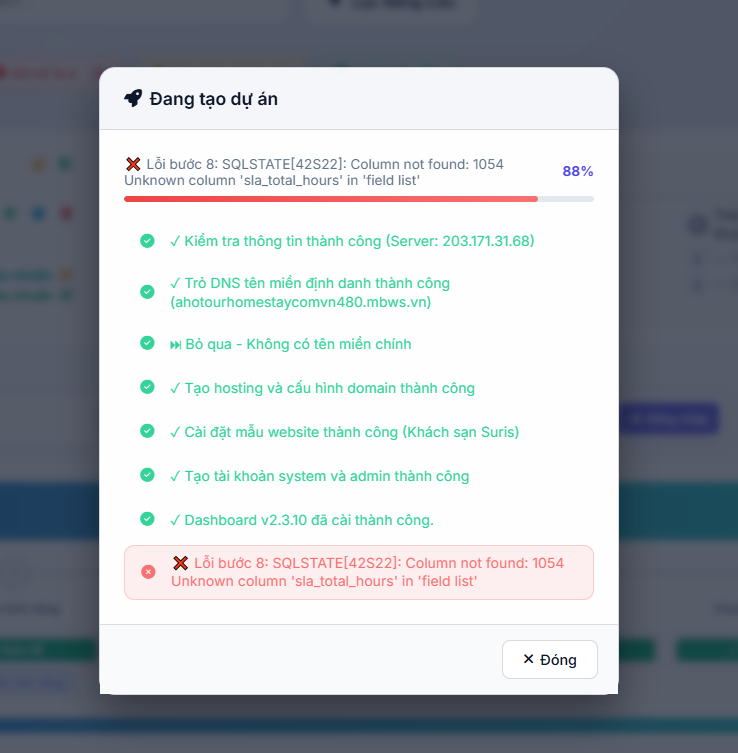 Check the error report for more information.