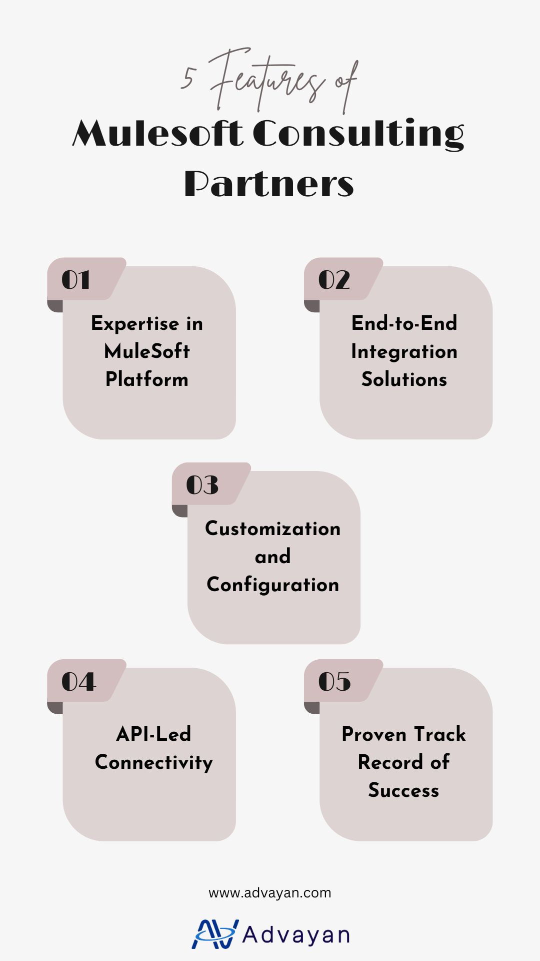 Advayan is a trusted MuleSoft consulting partner, offering expert services to streamline integration and drive digital transformation. With a deep understanding of MuleSoft's Anypoint Platform, Advayan helps businesses unlock the full potential of their data and applications. Our team of certified MuleSoft developers and architects provides end-to-end consulting services, from strategy and design to implementation and support. Whether you're looking to connect disparate systems, modernize legacy applications, or enable cloud migration, Advayan has the expertise and experience to deliver innovative solutions that accelerate your digital initiatives. Partner with Advayan for seamless integration and accelerated business growth.For more info visit us https://www.advayan.com/services/mulesoft-consulting-services