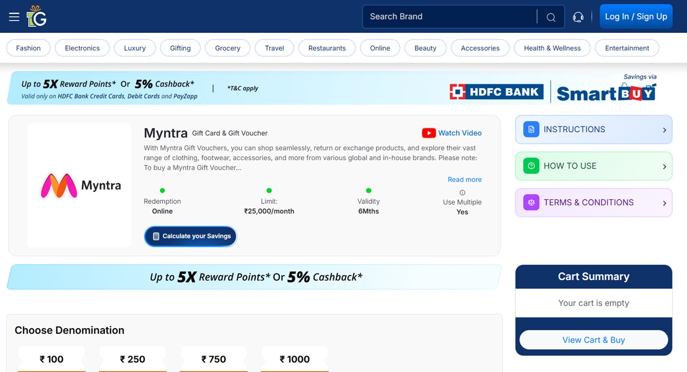 This image showcases stylish Gift Vouchers highlighting the Myntra HDFC offer and the convenience of a Myntra gift card code. Perfect for fashion lovers, these vouchers unlock great deals on clothing, accessories, and footwear. With instant digital delivery and easy redemption, they are ideal for gifting, employee rewards, or personal shopping while enjoying extra savings and trendy choices.