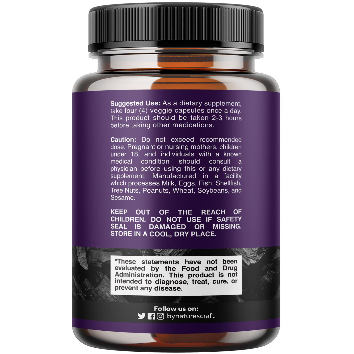 NC Activated Charcoal 120ct B0849L9R7N WIDE BOTTLE RENDER LEFT