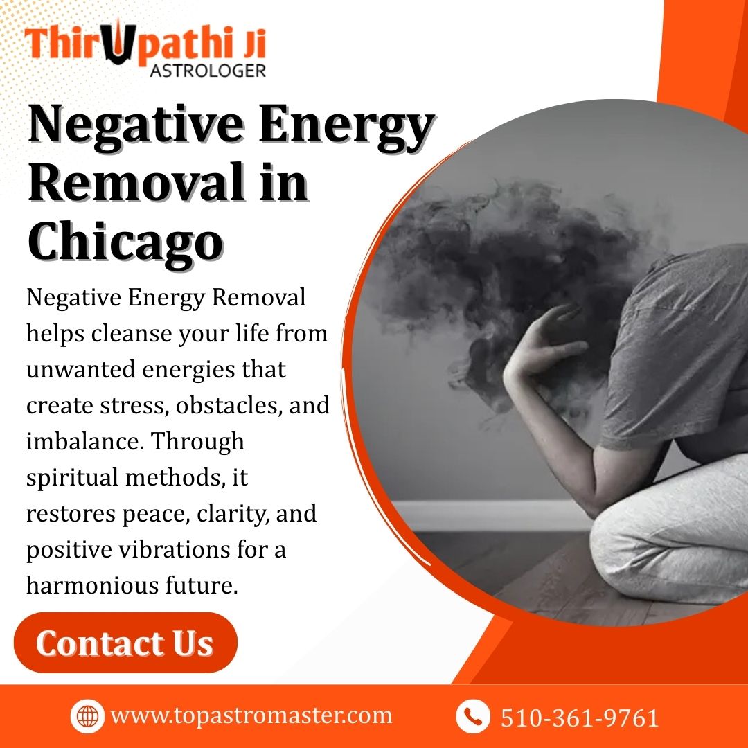 Looking for trusted Negative Energy Removal in Chicago? Astrologer Thirupathi Ji offers powerful spiritual remedies to neutralize negativity, stress, and unwanted energies. Our proven spiritual methods restore balance, harmony, and emotional well-being naturally through peace, protection, and positive vibrations.