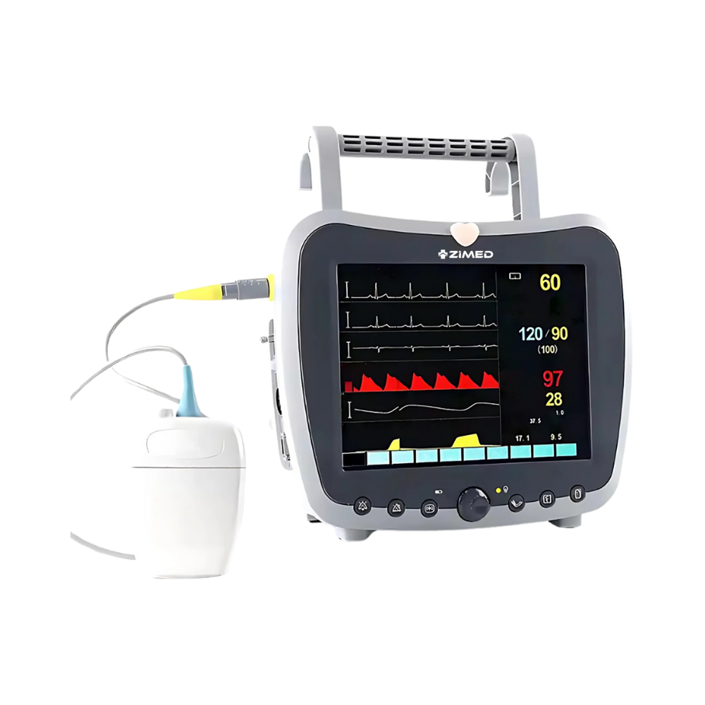 Zimed Neonate Monitor offers excellent pediatric and neonatal solutions with ECG NIBP SpO2 HR PR respiration temperature ST and arrhythmia analysis. A color LCD touchscreen with multi-language support ensures ease of use. Audible and visual alarms provide instant alerts for patient safety.