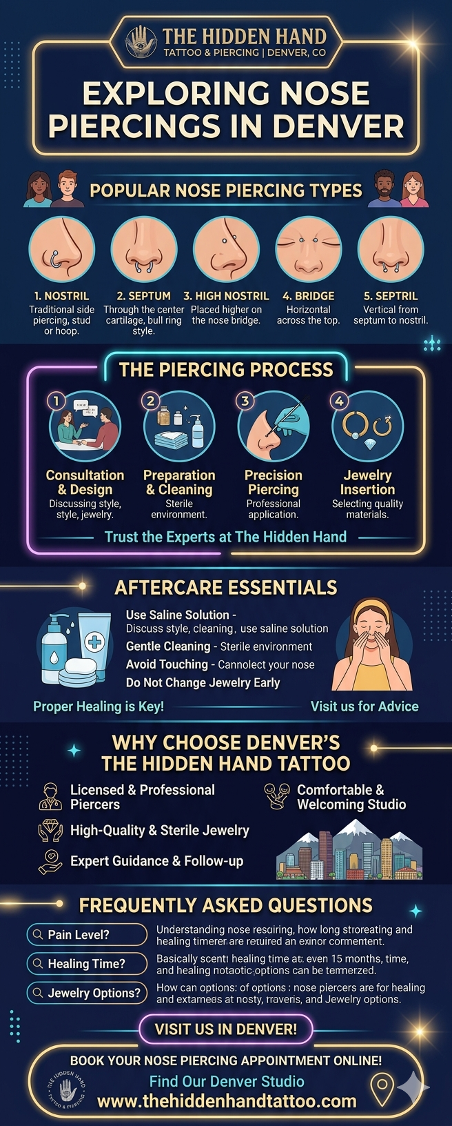 Book a safe and stylish nose piercing in Denver, CO with expert artists and high-quality jewelry. https://thehiddenhandtattoo.com/