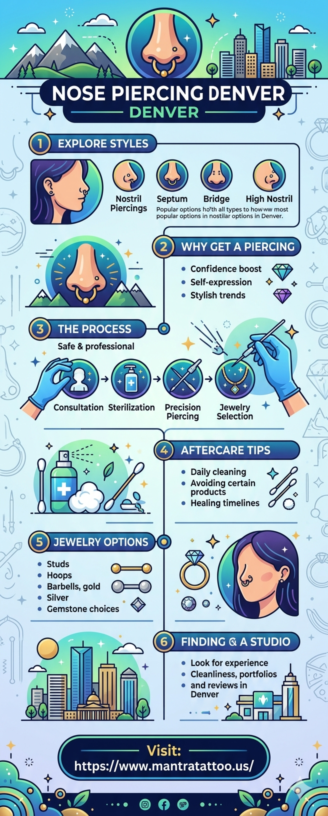 Get a safe and stylish nose piercing in Denver from experienced professional piercers. https://mantratattoo.us/nose-piercing-denver/