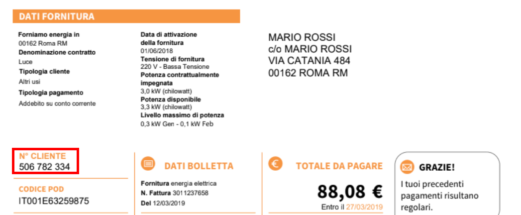 numero cliente