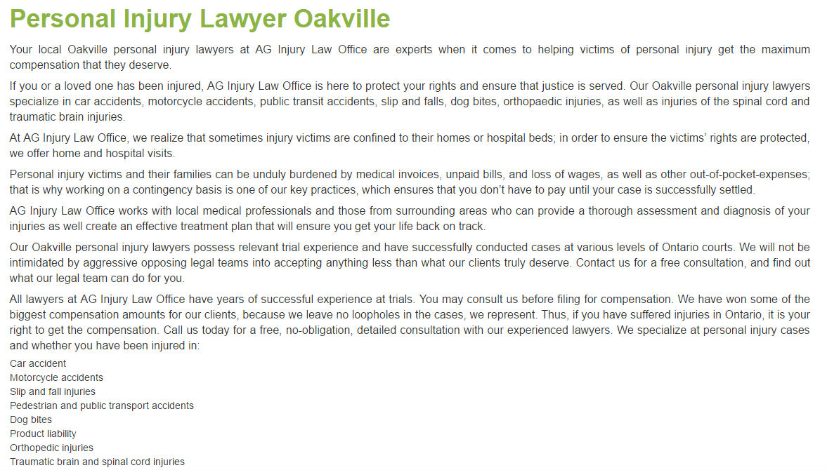 Oakville Injury Lawyer - AG Injury Law Office (800) 870-3194