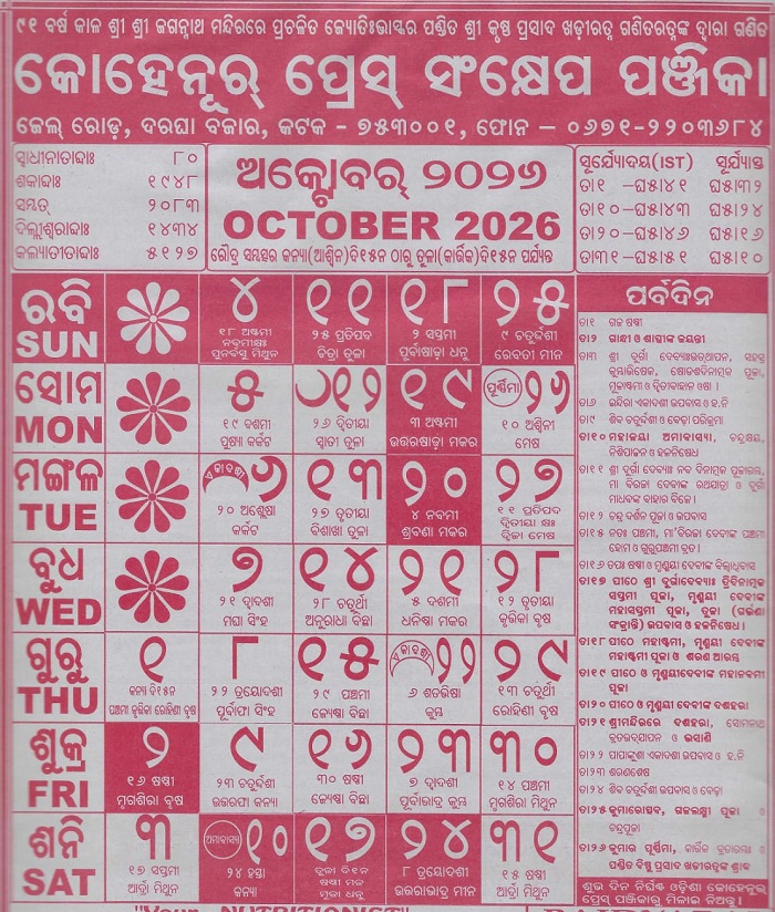 Odia Kohinoor Calendar October Nua Odisha