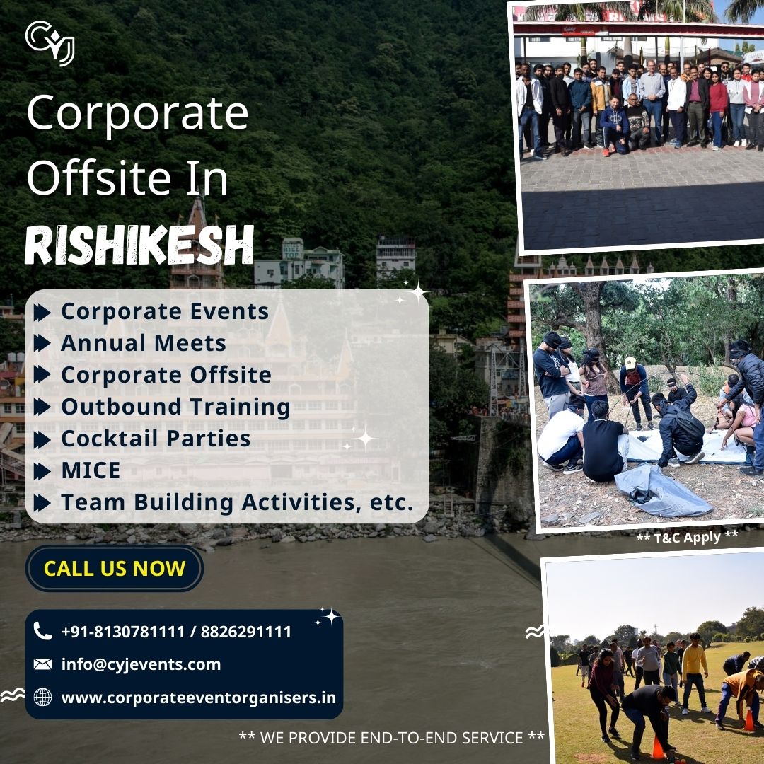 CYJ Events (a unit of Comfort Your Journey Pvt. Ltd.) offers the best Offsite MICE Options in Rishikesh. Rishikesh, with its vibrant atmosphere and world-class hospitality, is perfect for hosting MICE- (Meetings, Incentives, Conferences, Exhibitions) events. CYJ Events provides comprehensive services to ensure that your offsite event is a grand success.