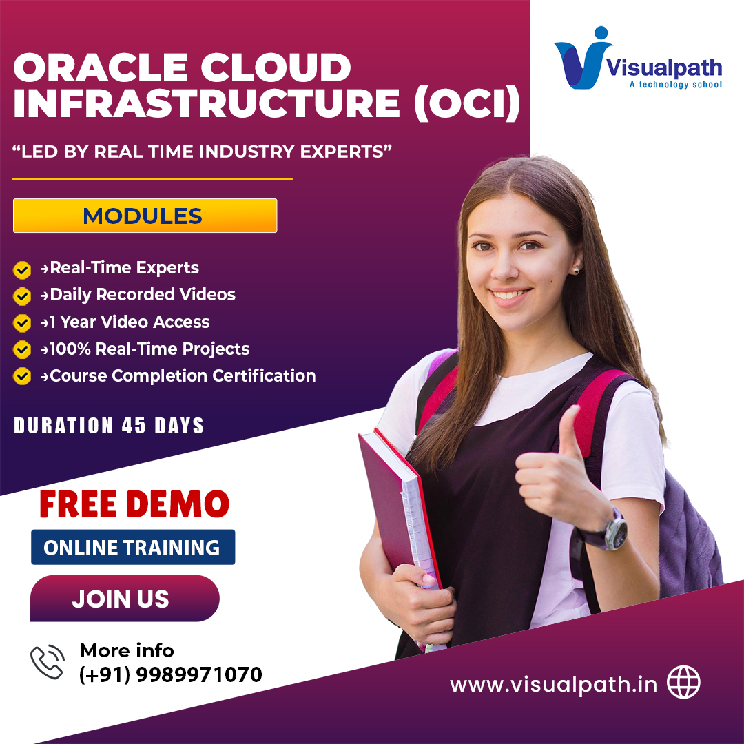 VisualPath offers Oracle Cloud Infrastructure Training and Certification, led by industry experts with over 10 years of experience. Our program includes hands-on projects and is taught by highly skilled, certified trainers. You can access our Oracle Cloud Infrastructure Training,