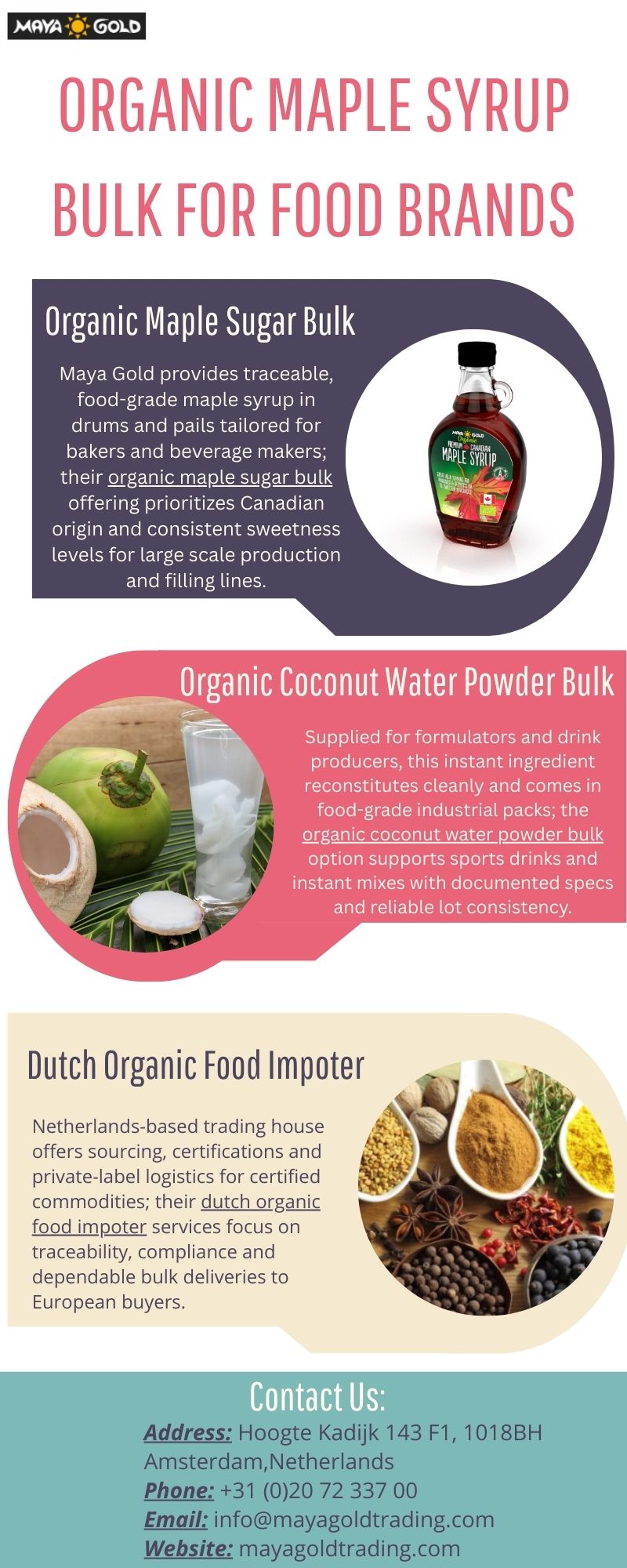 Sourced and packaged for confectionery and cosmetic makers, the deodorized organic cacao butter delivers consistent melting behavior and neutral flavour; procurement teams handling organic maple sugar bulk also coordinate multi-ingredient shipments for seamless production runs.