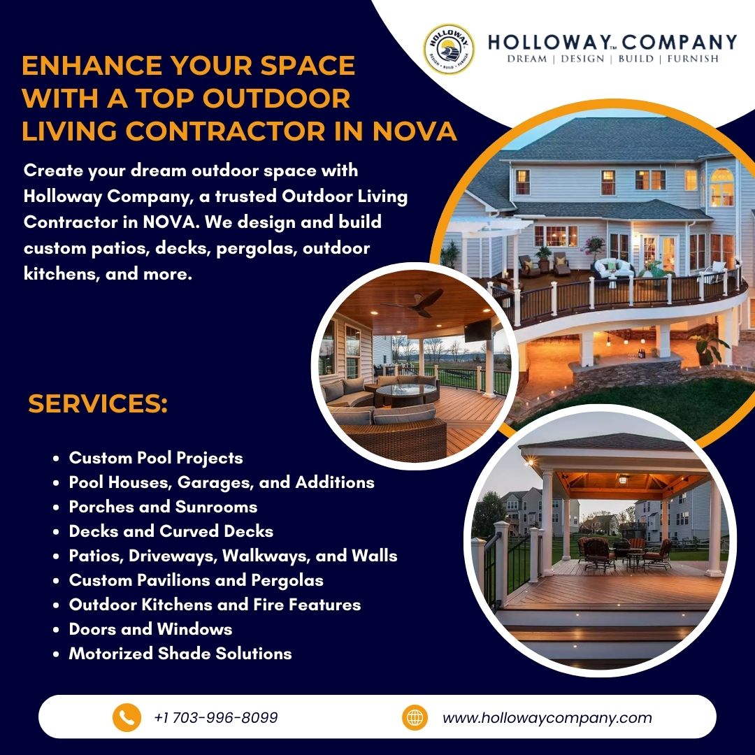 : Transform your backyard into a stunning retreat with Holloway Company, the leading Outdoor Living Contractor in NOVA. From custom patios, decks, pergolas, and outdoor kitchens to pool projects and shade solutions, we design and build spaces that match your lifestyle. Call +1 703-996-8099 or visit : https://hollowaycompany.com/