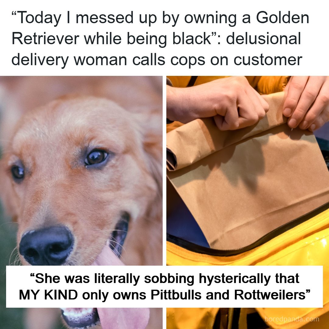 owning golden retriever being black delivery woman police call