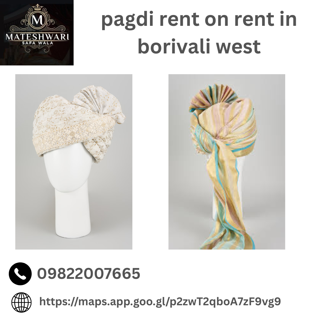 Looking for a stylish pagdi to complete your wedding or festive attire? We offer a premium collection of pagdi on rent in Borivali West, available in various colors, fabrics, and designs. Perfect for grooms, family members, and guests at weddings, receptions, and cultural events. Affordable rental rates, quality materials, and customized fittings available. Book your perfect pagdi today!