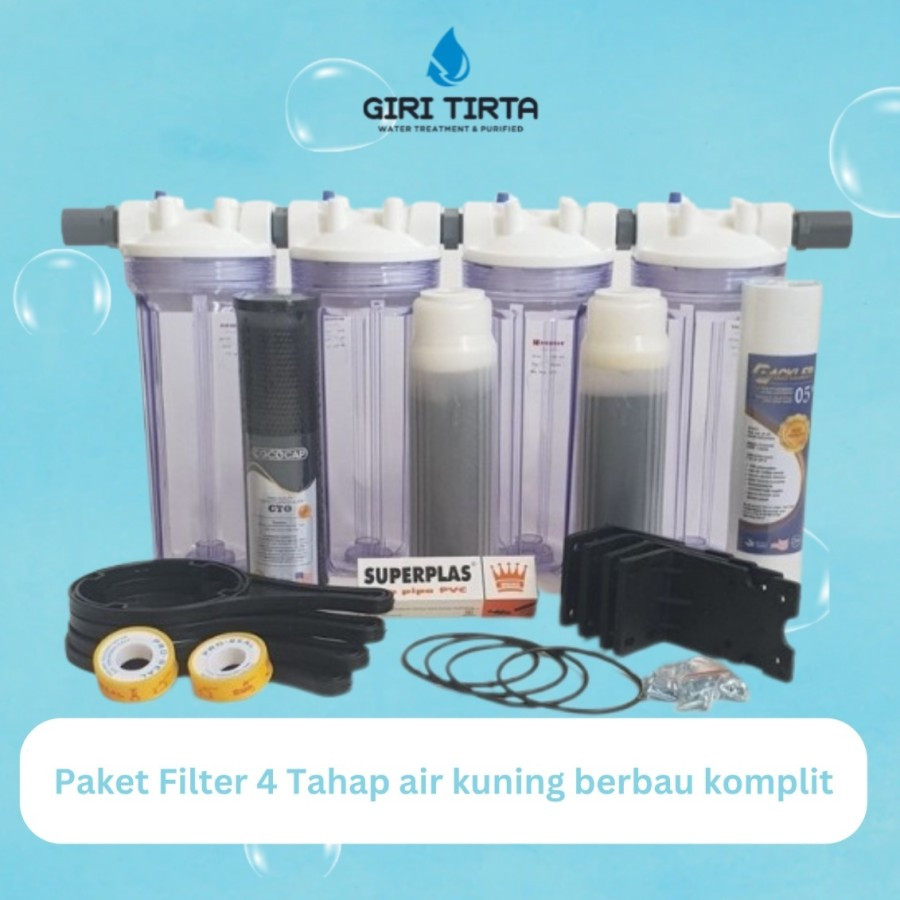 Paket Filter Air Sumur Kuning Berkapur 4 Tahap Housing Clear 10 inch