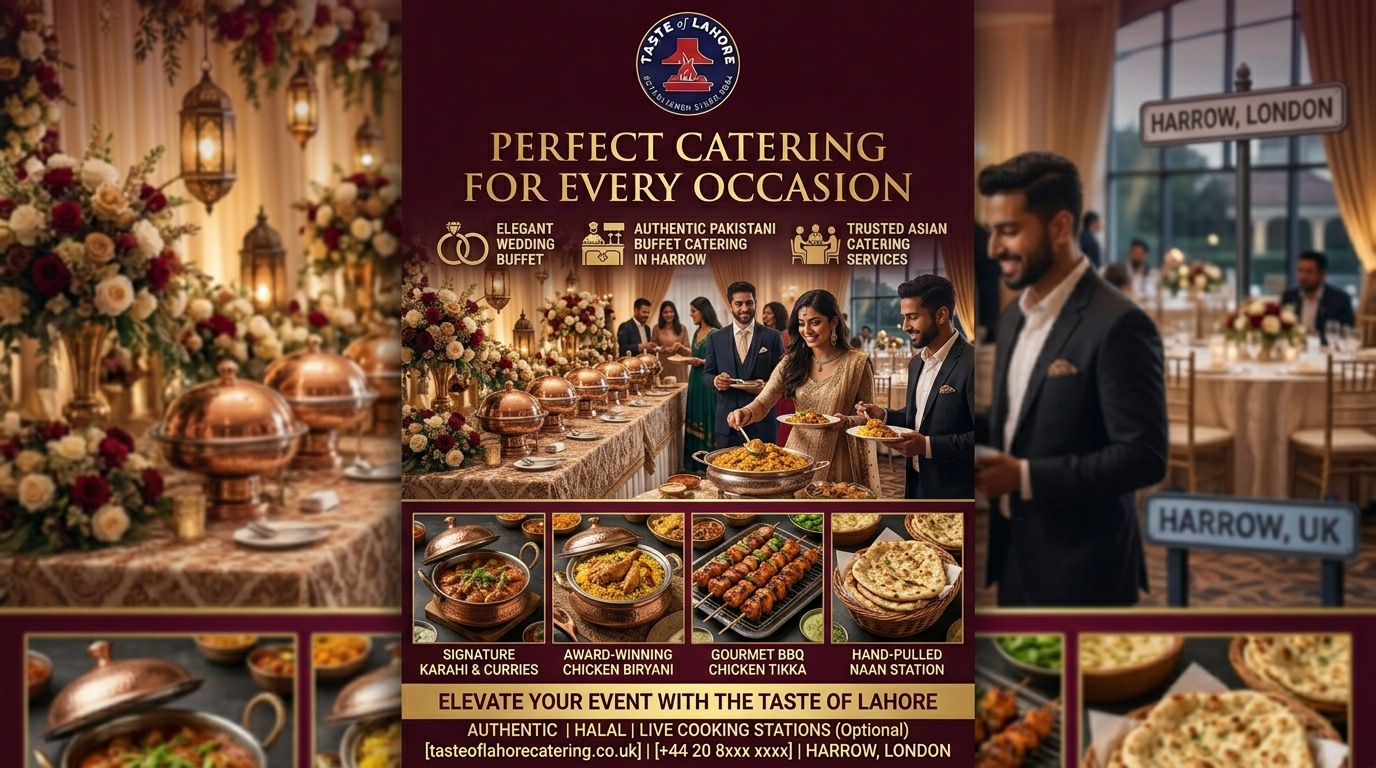Make your events unforgettable with the best Pakistani buffet catering in Harrow. From traditional biryani, karahi, and BBQ to delicious desserts, our expert chefs serve authentic Pakistani flavors with top-quality service. Perfect for weddings, parties, and corporate events. Book now for a truly memorable buffet experience!