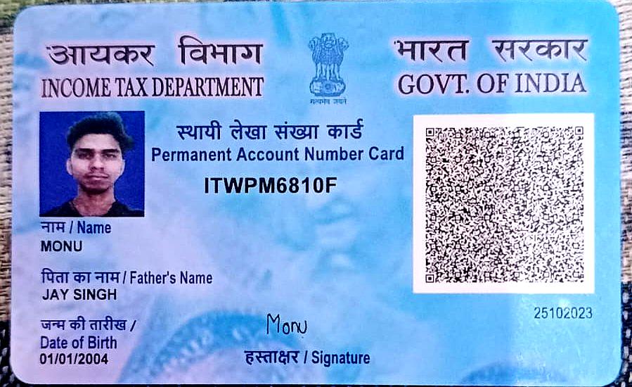 PAN CARD FRONT MONU