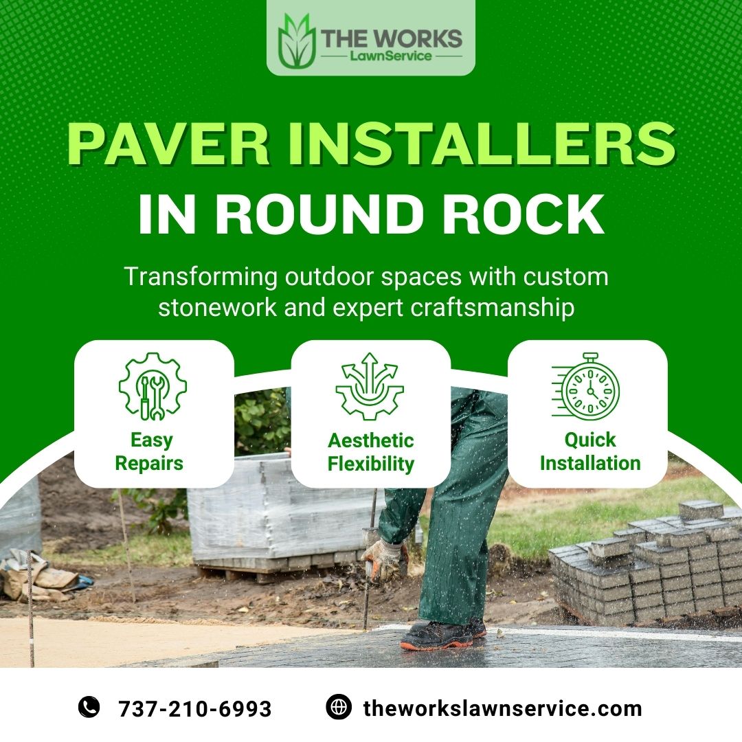 Uneven ground, shifting soil, and design challenges can turn paver installation into a frustrating and time-consuming project. The Works Lawn Service, expert paver installers in Round Rock, handles every step with precision for lasting strength and clean, polished results. Enjoy a flawless surface without the stress. Contact us today to transform your outdoor space.