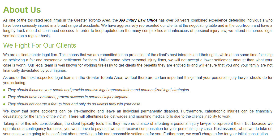 Personal Injury Lawyer Oakville - AG Injury Law Office (800) 870-3194