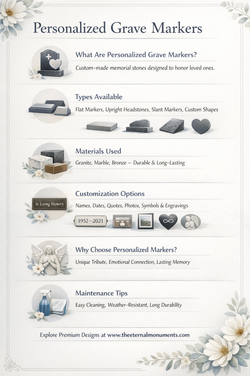 Looking for high-quality personalized grave markers in Inverness? We offer beautifully crafted personalized grave markers designed to honor your loved ones with dignity and care. Our custom memorial solutions combine durability, elegance, and meaningful personalization to create lasting tributes. Whether you need unique engravings, custom shapes, or premium materials, our personalized grave markers are tailored to your preferences. Serving families in Inverness, we are committed to delivering exceptional craftsmanship and compassionate service. Choose personalized grave markers that truly reflect memories and legacy. Contact us today to design a heartfelt and timeless memorial for your loved ones.