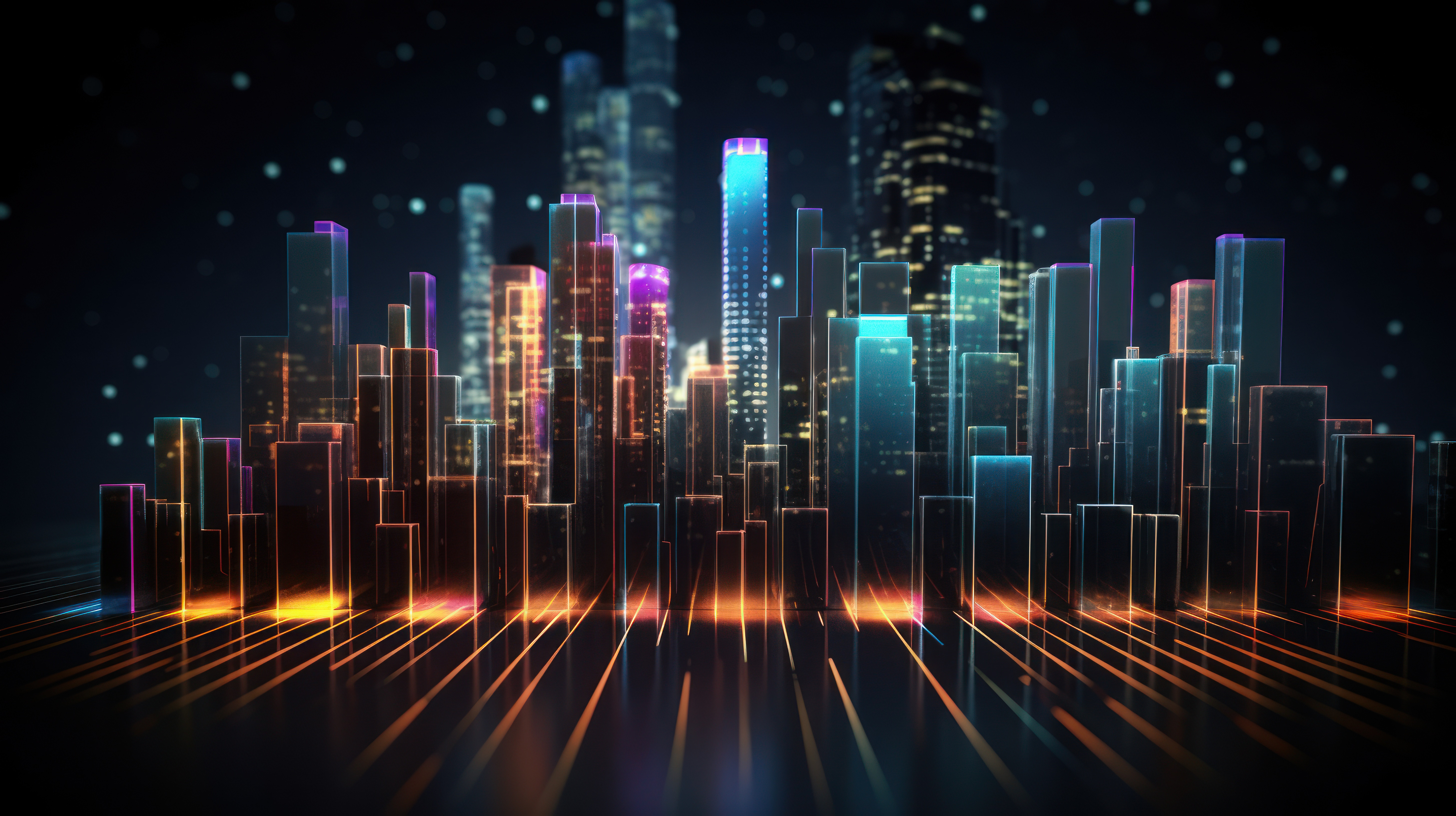 Perspective view on infographic chart with digital graphs diagram and indicators on dark background
